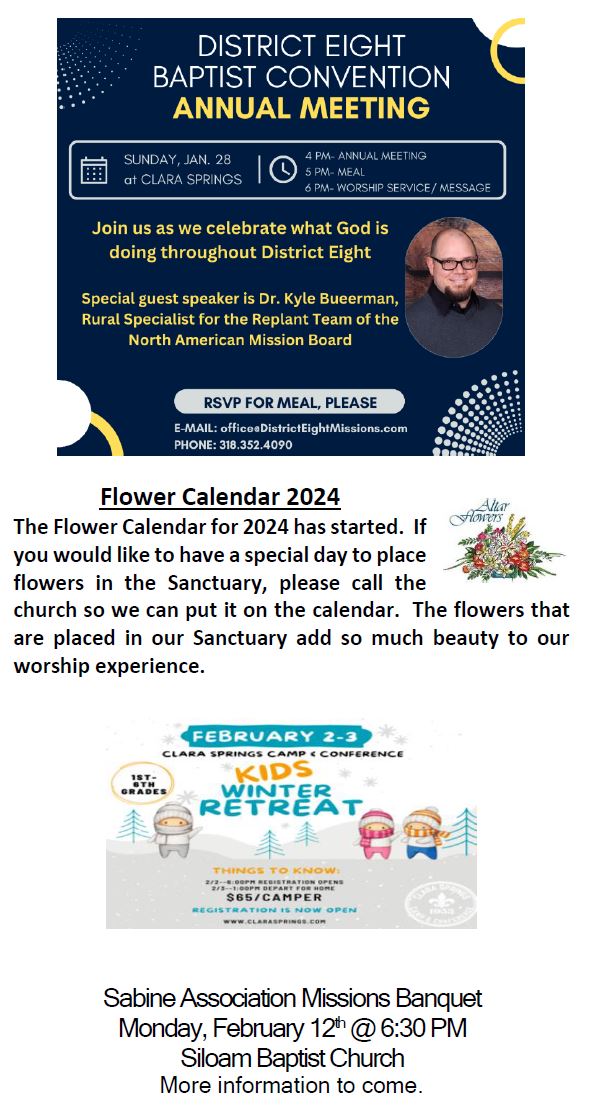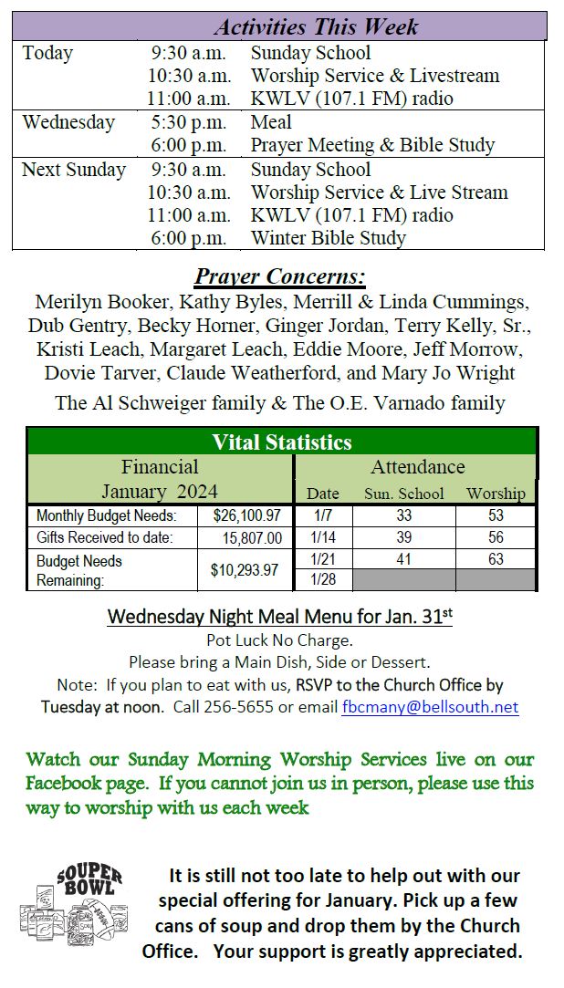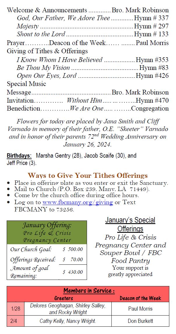 Sunday Bulletin -  January 28, 2024