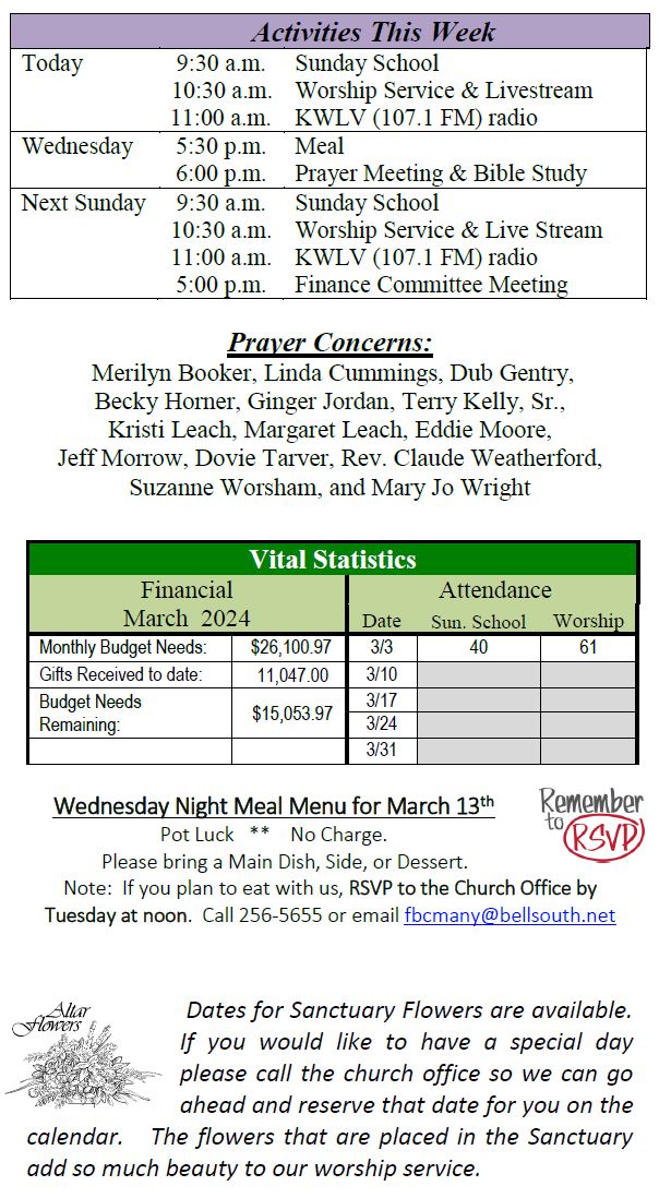 Sunday Bulletin -  March 10, 2024