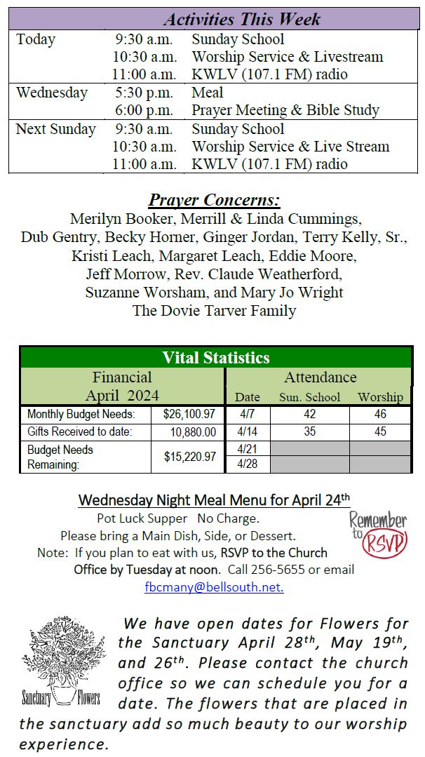 Sunday Bulletin -  April 21, 2024