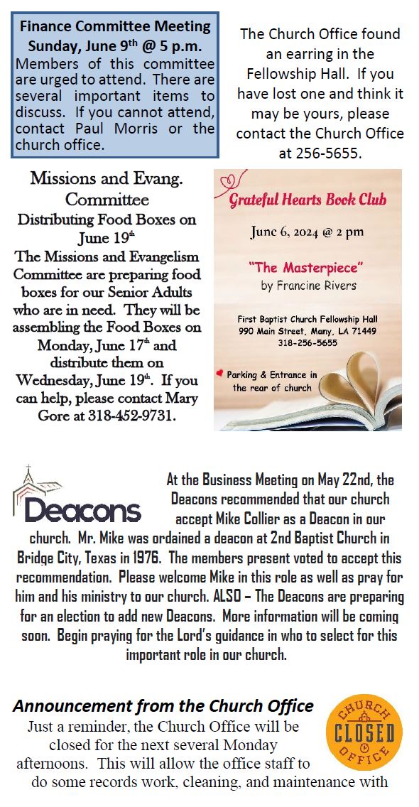 Sunday Bulletin -  June 2, 2024