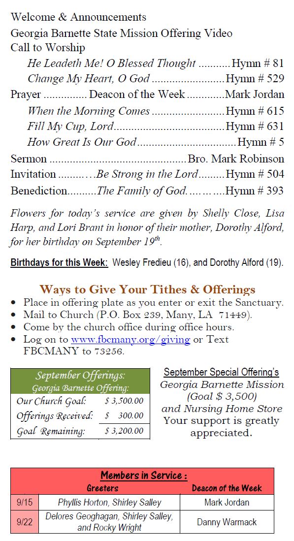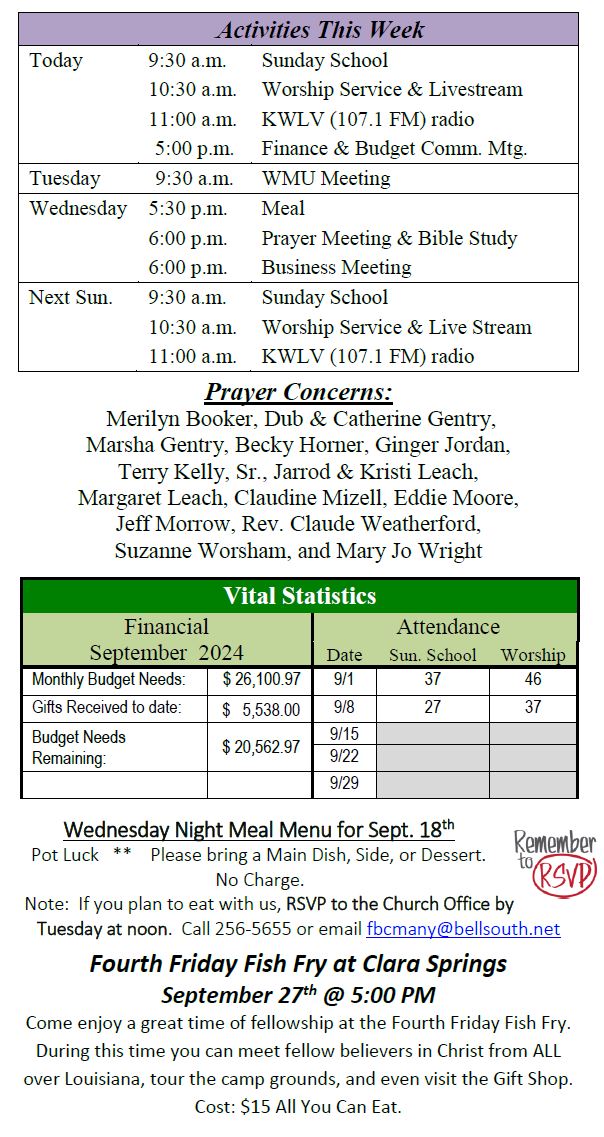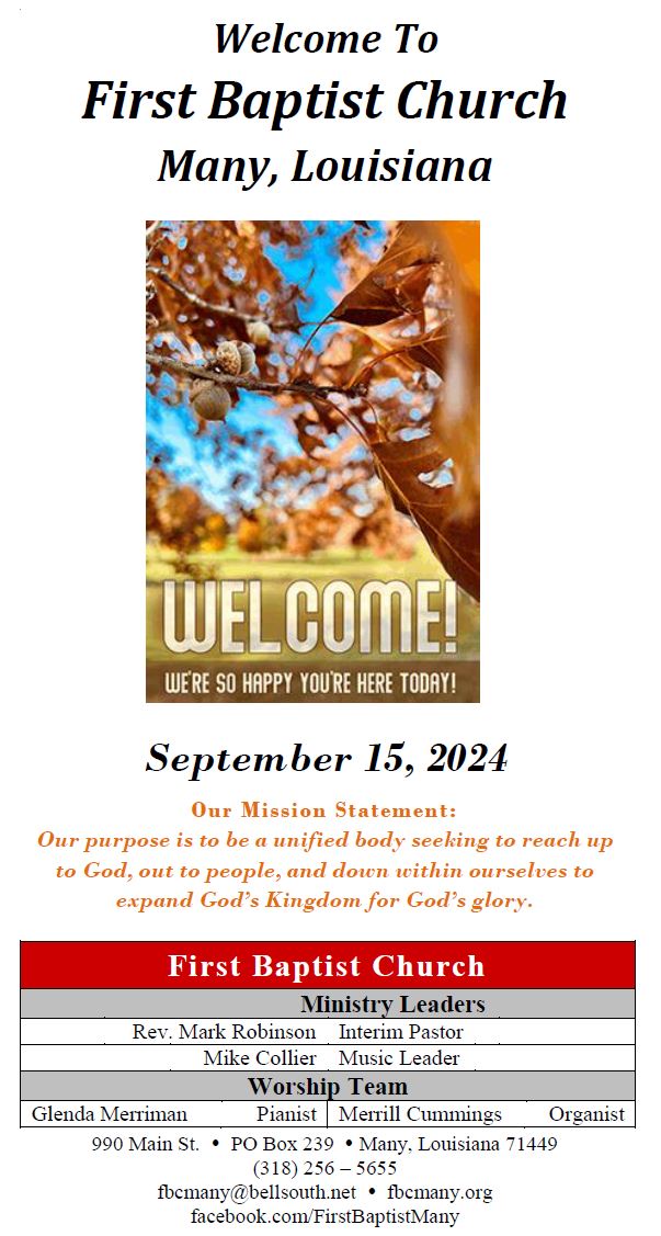 Sunday Bulletin -  September 15, 2024
