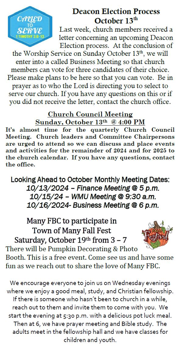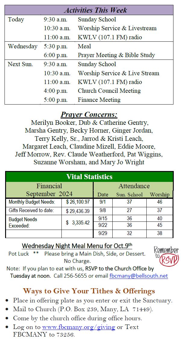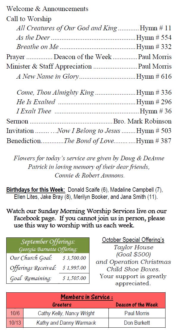 Sunday Bulletin -  October 6, 2024