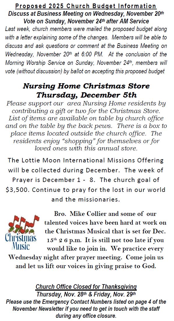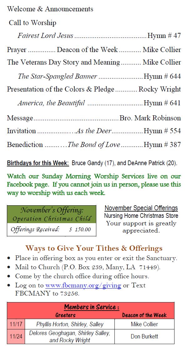 Sunday Bulletin -  November 17, 2024