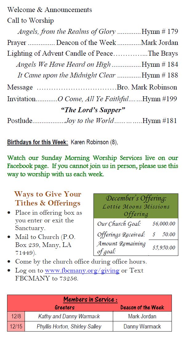 Sunday Bulletin -  December 8, 2024