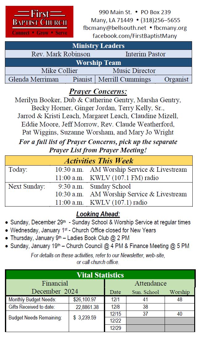 Sunday Bulletin -  December 22, 2024