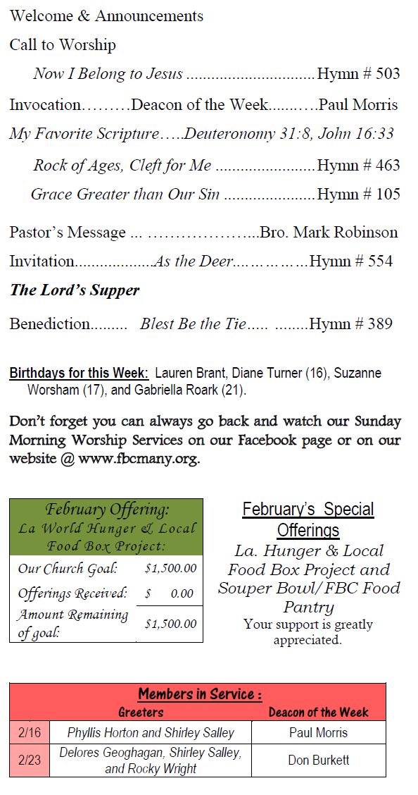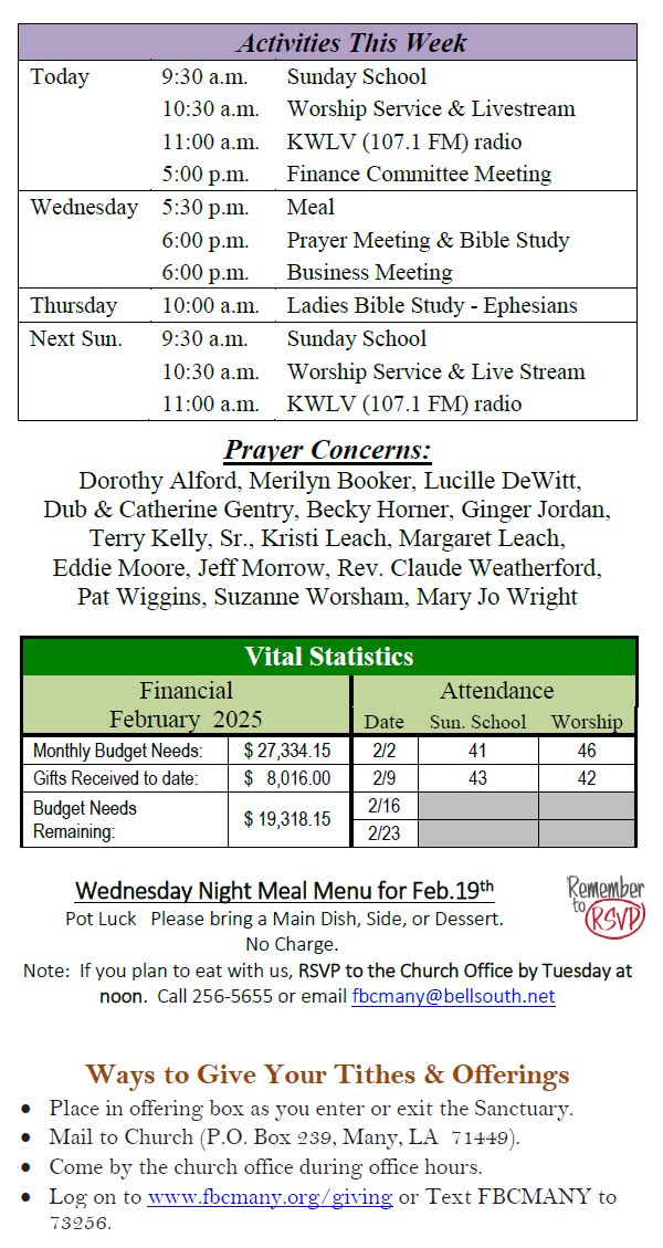 Sunday Bulletin -  February 16, 2025