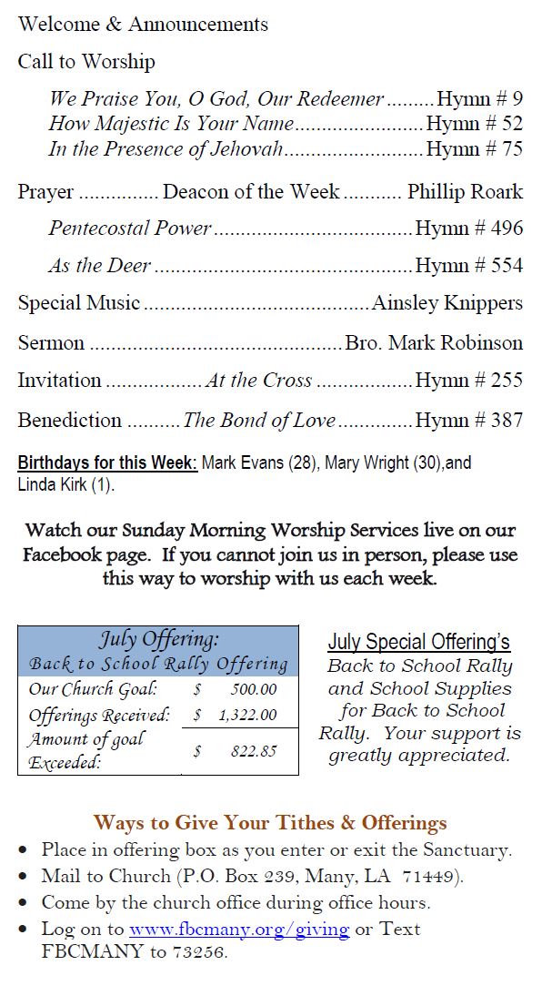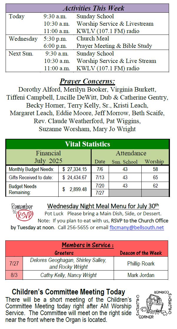 Sunday Bulletin -  July 27, 2025