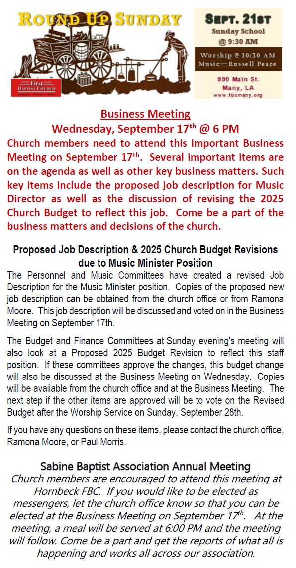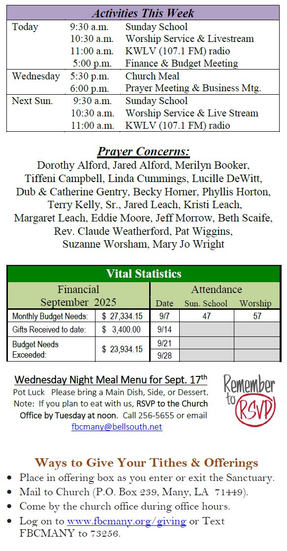 Sunday Bulletin -  September 14, 2025