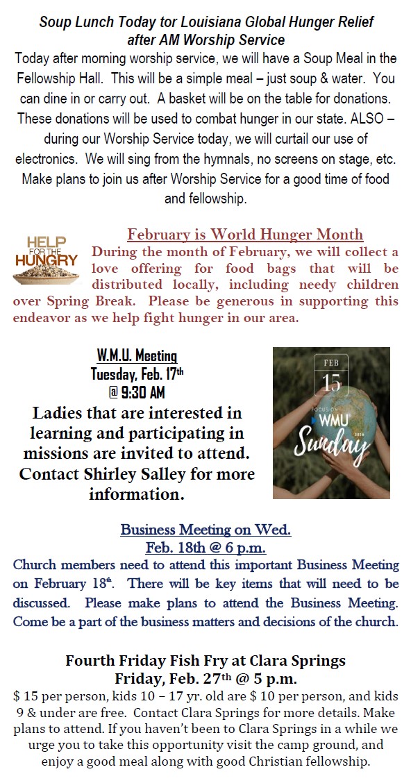 Sunday Bulletin -  February 15, 2026
