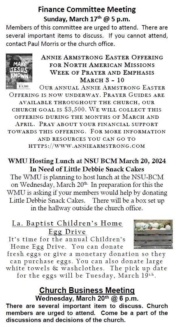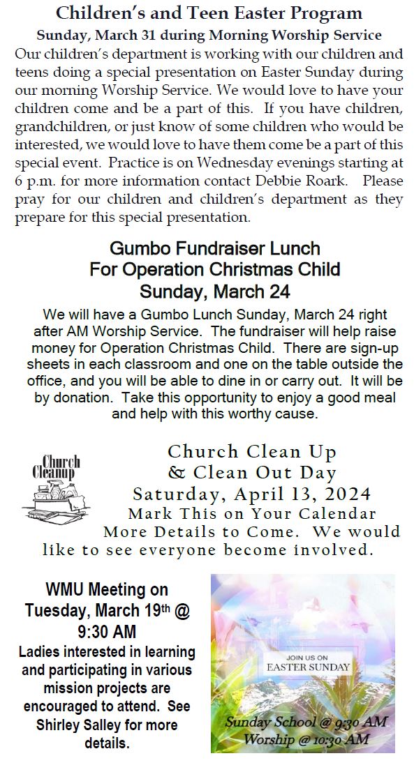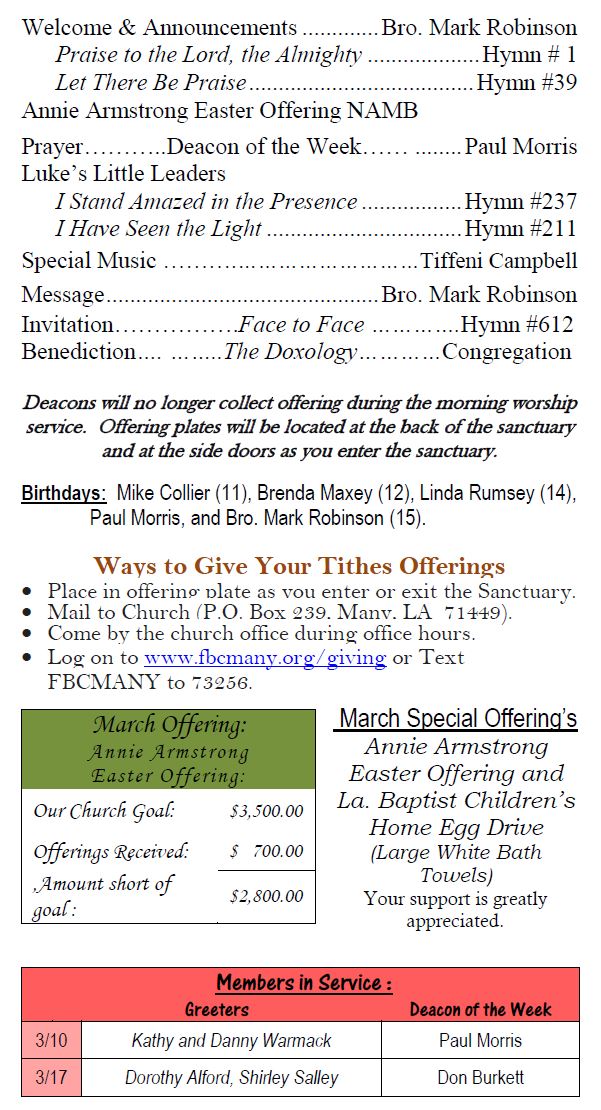 Sunday Bulletin -  March 10, 2024