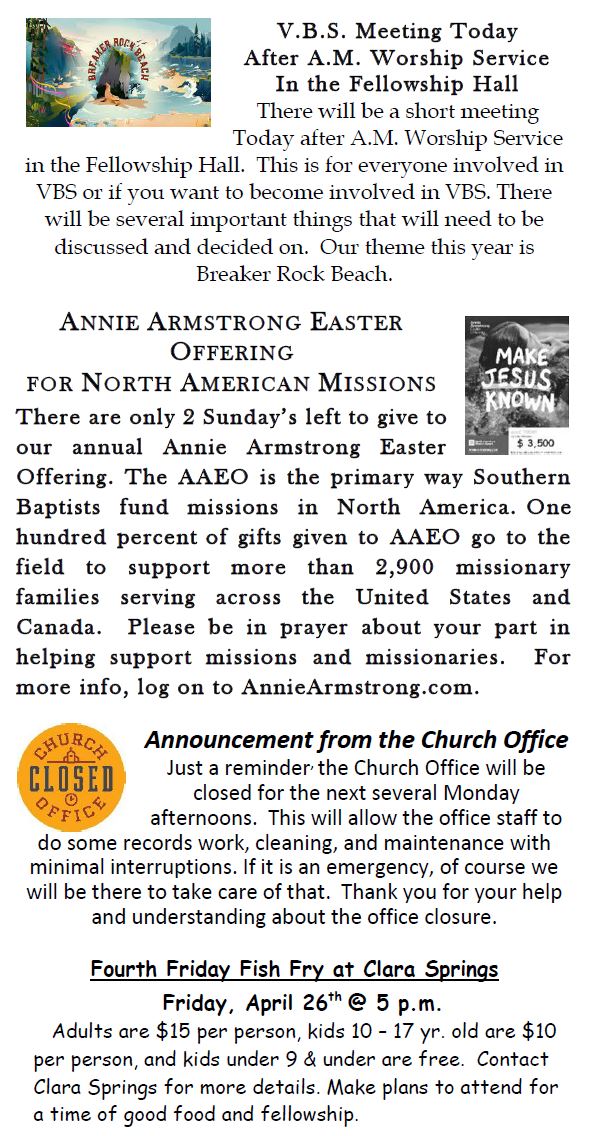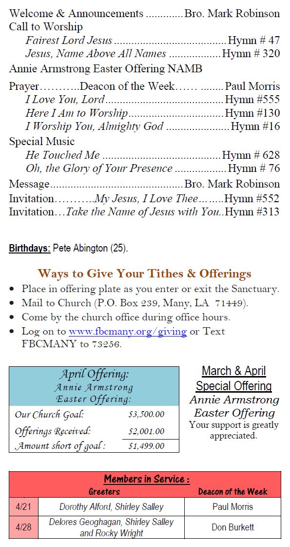Sunday Bulletin -  April 21, 2024