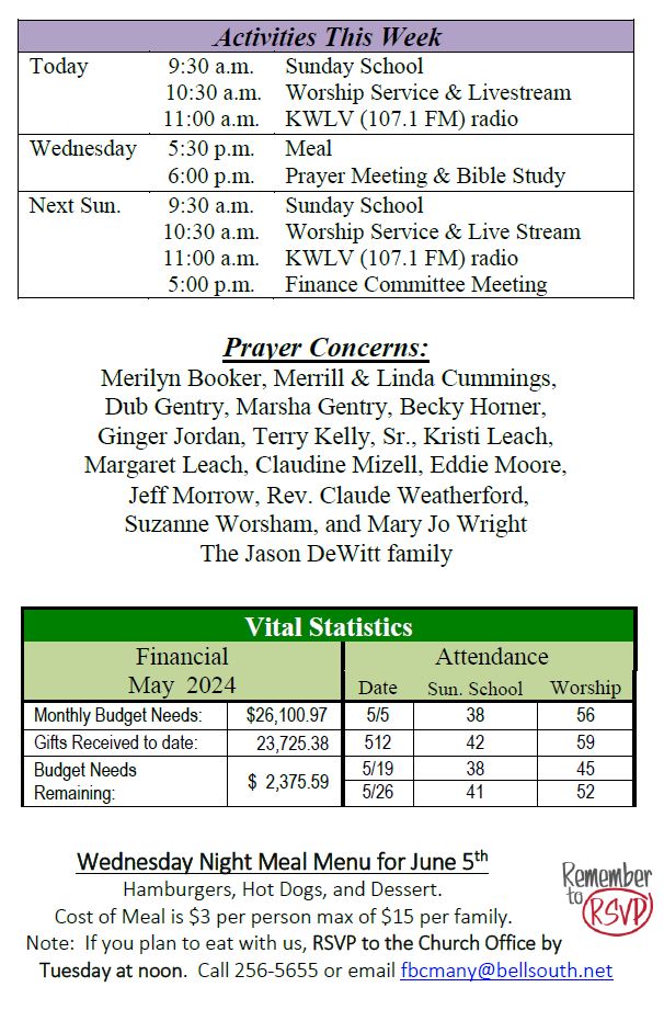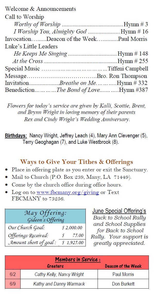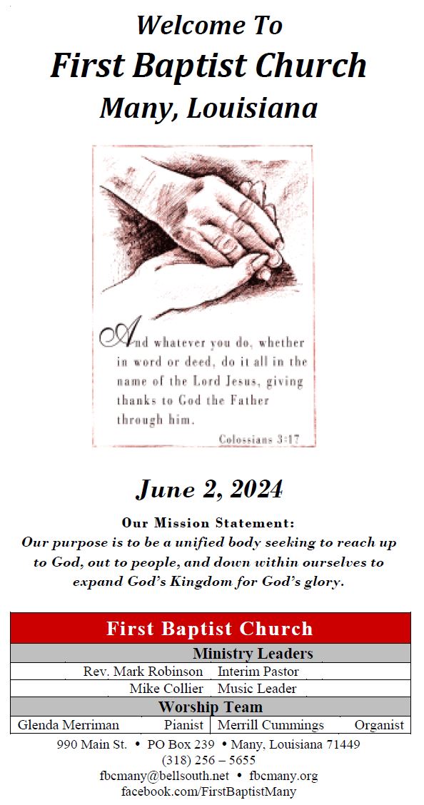 Sunday Bulletin -  June 2, 2024