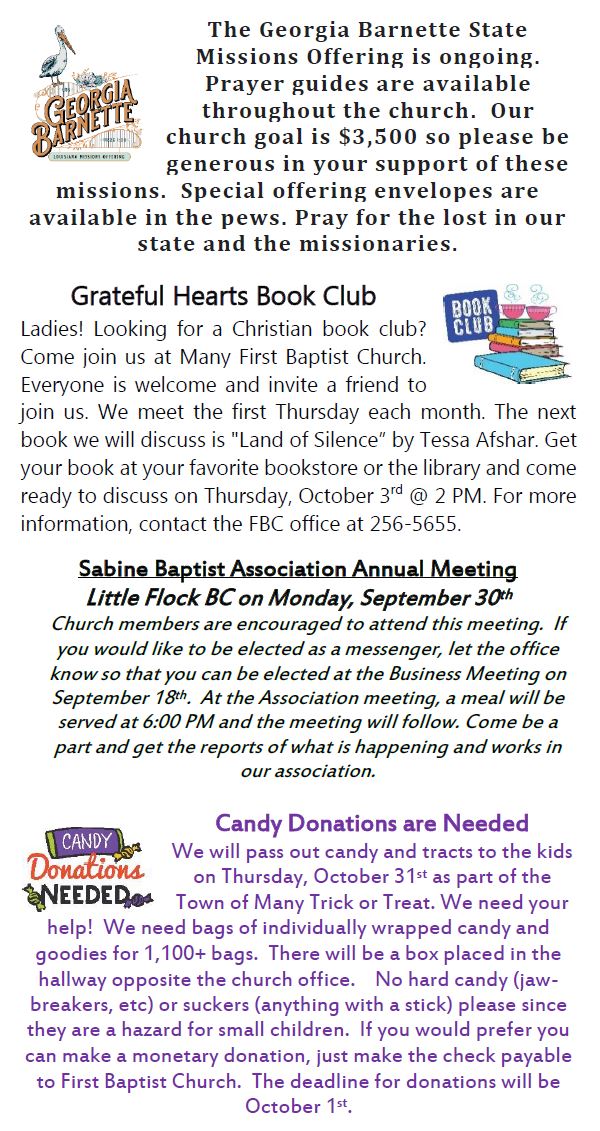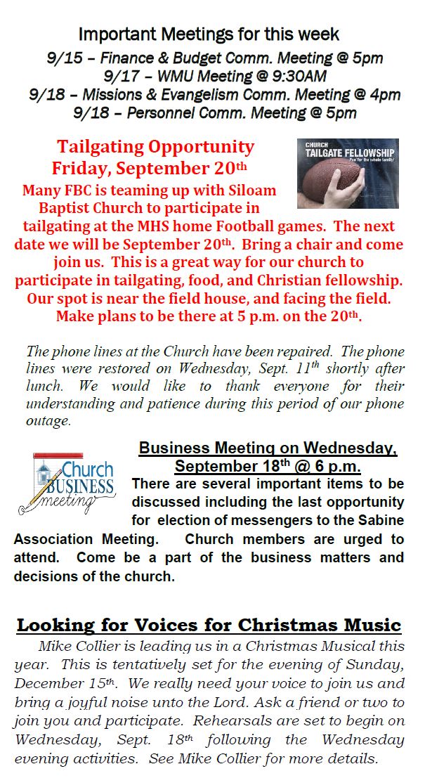 Sunday Bulletin -  September 15, 2024