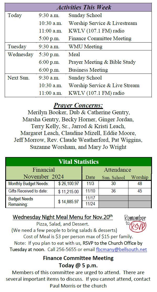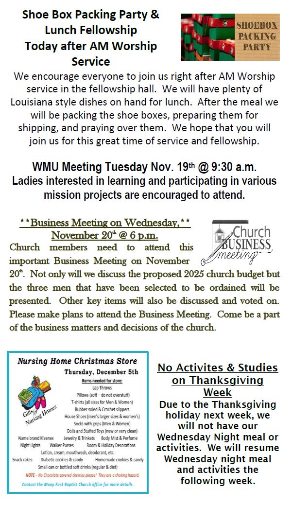 Sunday Bulletin -  November 17, 2024