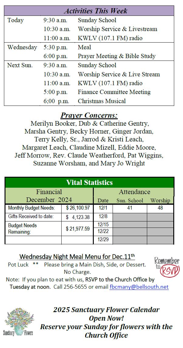 Sunday Bulletin -  December 8, 2024