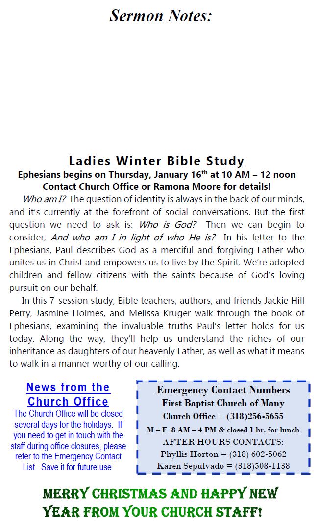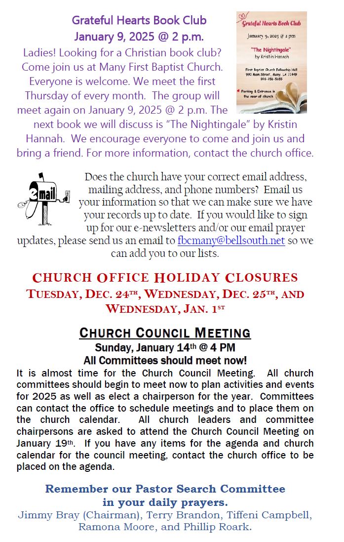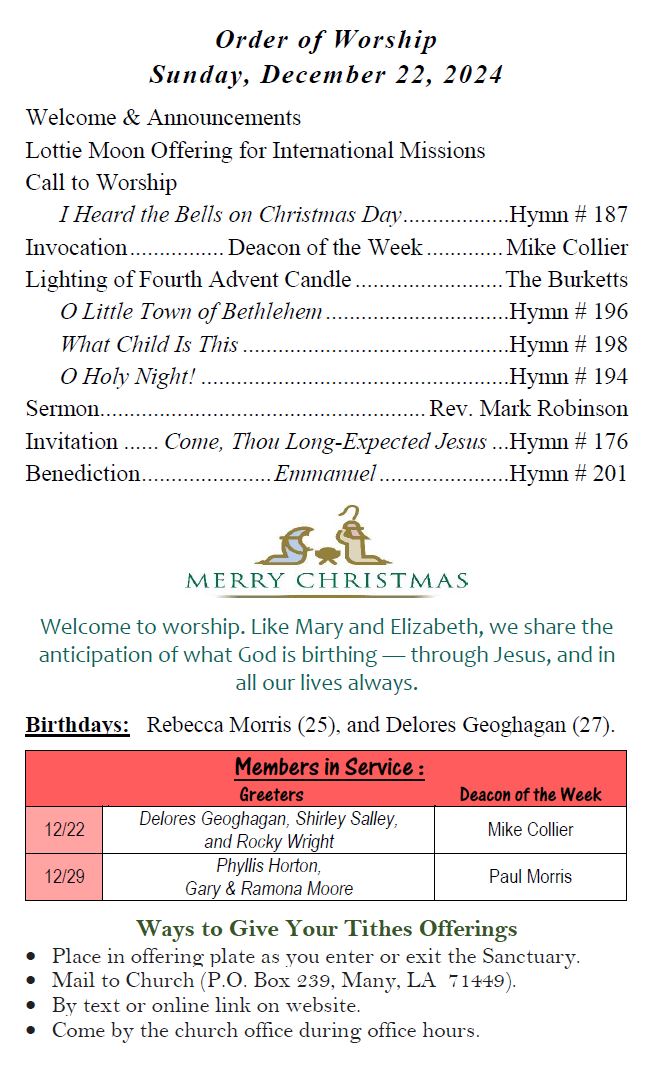 Sunday Bulletin -  December 22, 2024