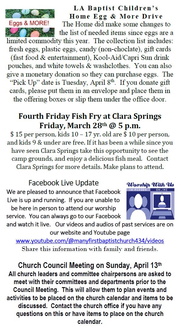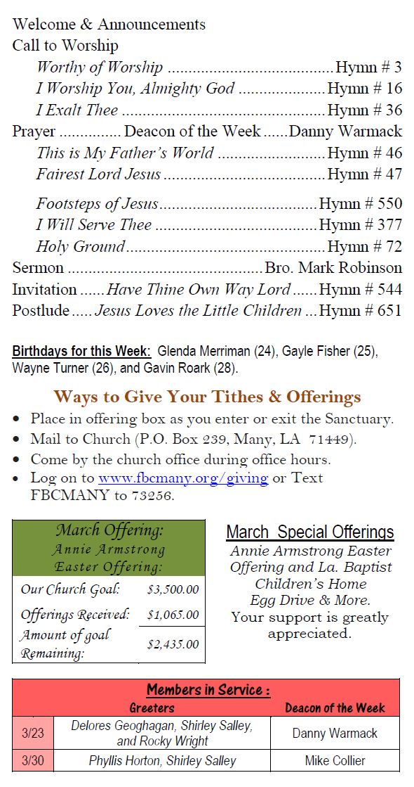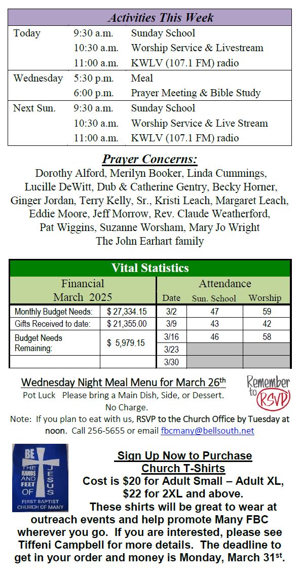 Sunday Bulletin -  March 23, 2025