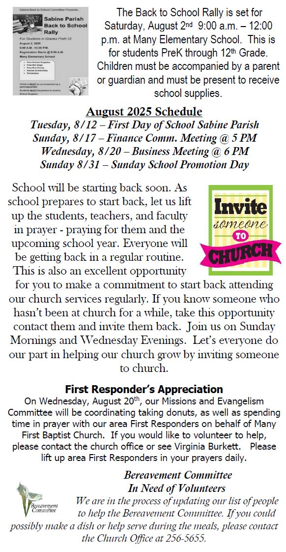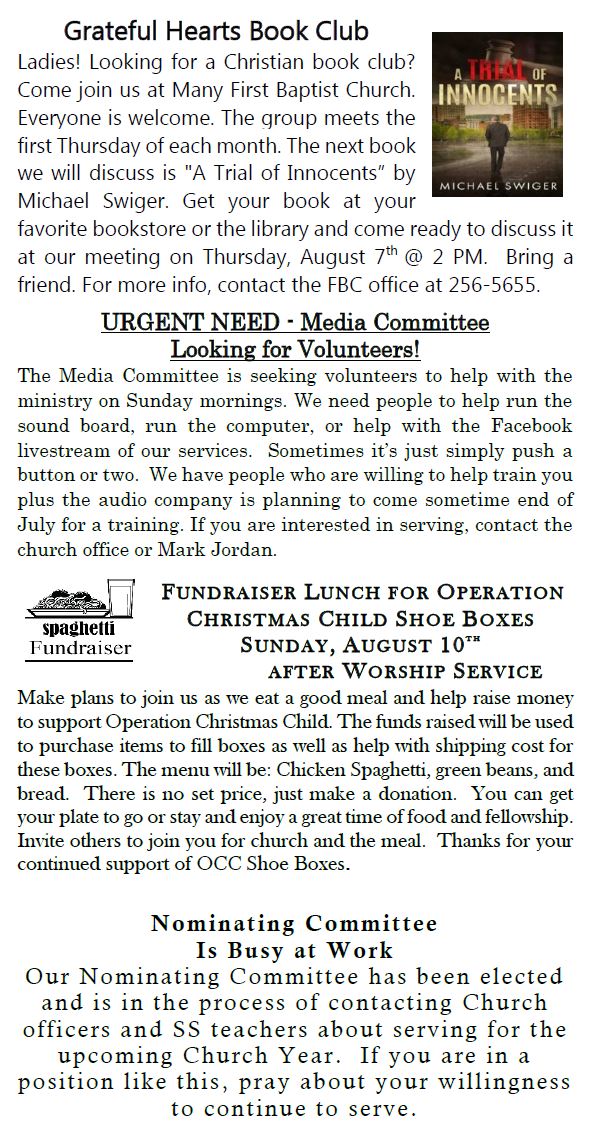 Sunday Bulletin -  July 27, 2025