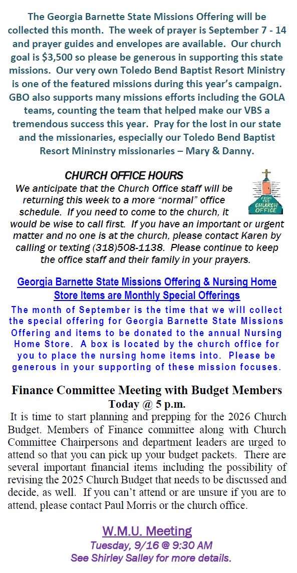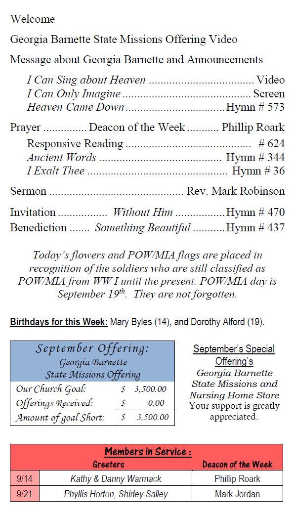 Sunday Bulletin -  September 14, 2025