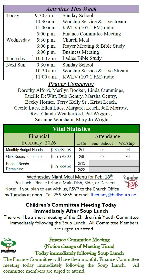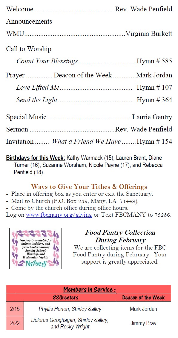 Sunday Bulletin -  February 15, 2026